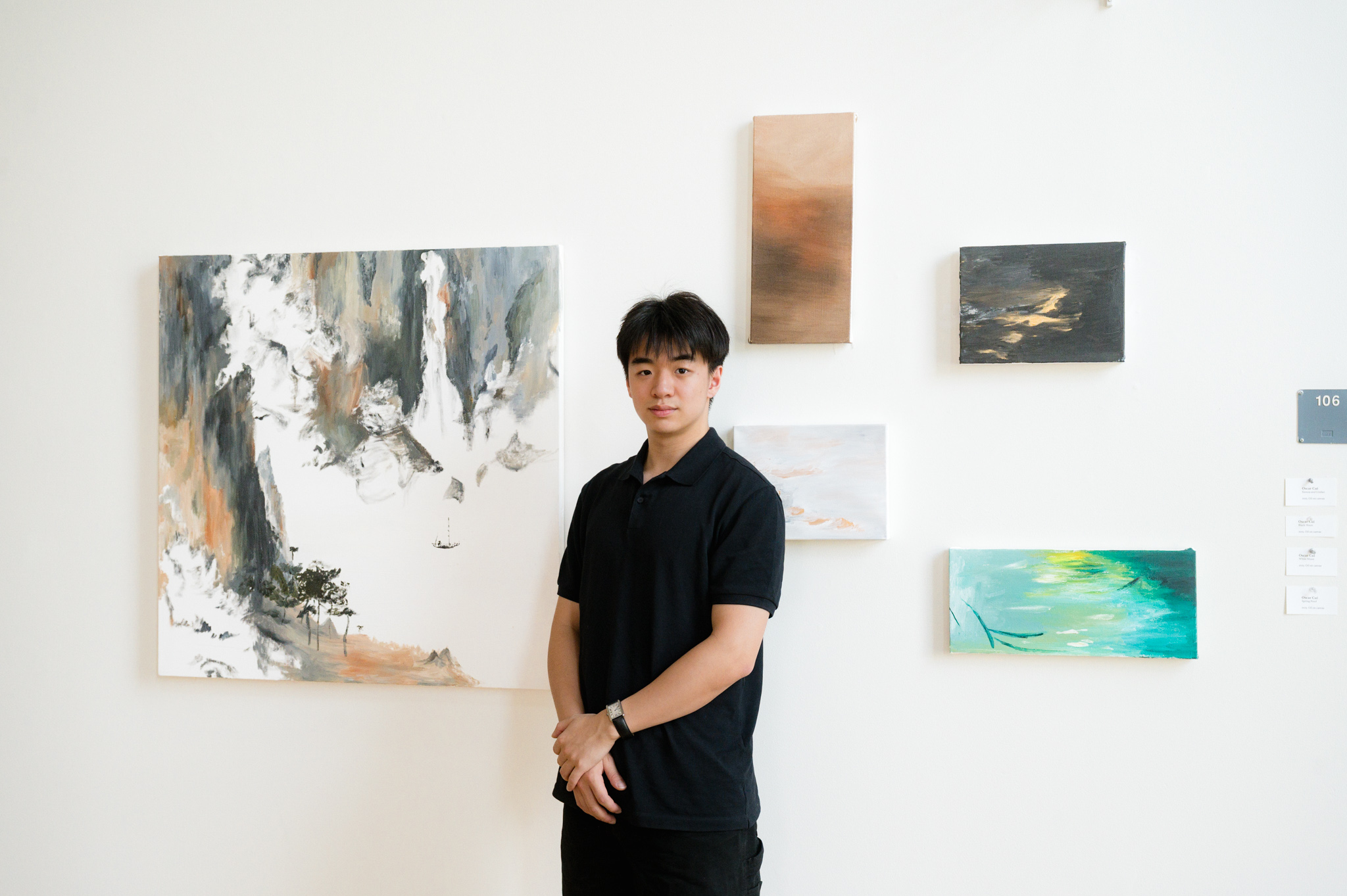 Student artwork is regularly on display throughout the Reed Campus Center, while the Grubbs Gallery typically displays a professional artist’s portfolio or project. But to end the 2024-25 academic year, Oscar Cui ’25 was invited by the art department to display his paintings in the Grubbs Gallery and host an artist reception.