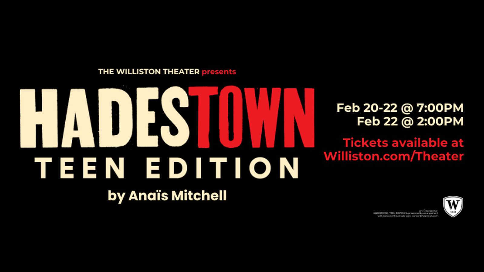 This February, the Williston Theater will proudly presents our 2025 winter musical: Hadestown: Teen Edition.