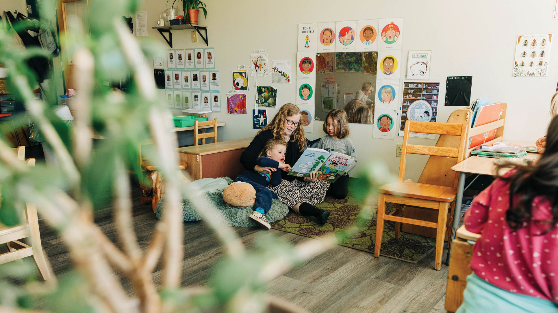 Part of what I love about my job is that every day is completely different and I never know what to expect. I start by going into each classroom and saying good morning to all the kids and teachers who are here. The rest of the day depends on who’s out and if we have a sub and that kind of stuff. I cover teachers’ breaks, so I’m often in classrooms lunchtime and story time because I love to read to the kids. I’m constantly making decisions and problem solving, so by the time I get home, if someone says, “What’s for dinner?,” I’m like “No” because I’ve made 250 million decisions today. and I can’t make another one.