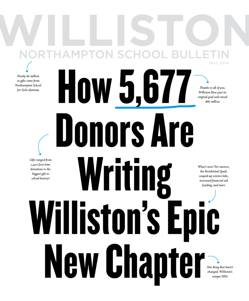 Williston Builds was the most ambitious fundraising initiative in Williston Northampton’s 183-year history. Our goals were simple. To elevate the school in four key areas: Community, Access and Belonging, Academic Excellence, and Momentum. Eight years, 5,677 donors, and $86 million later, we’ve been able to build far more than we ever dreamed.